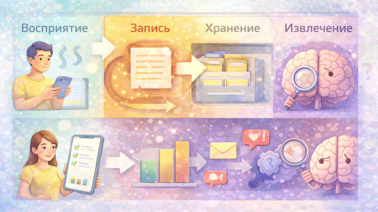 Есть и второй момент — извлечение. Когда тревожно, нужные слова и факты могут “не находиться”. Это похоже на ситуацию, когда файл есть, но поиск по нему временно тупит из-за перегрузки системы.