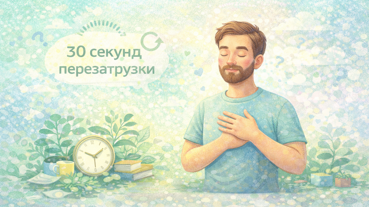Тут не будет советов “полностью убери стресс”. Задача проще: дать мозгу сигнал «угроза снижается», хотя бы на 10–15%. Этого часто достаточно, чтобы ясность постепенно вернулась.